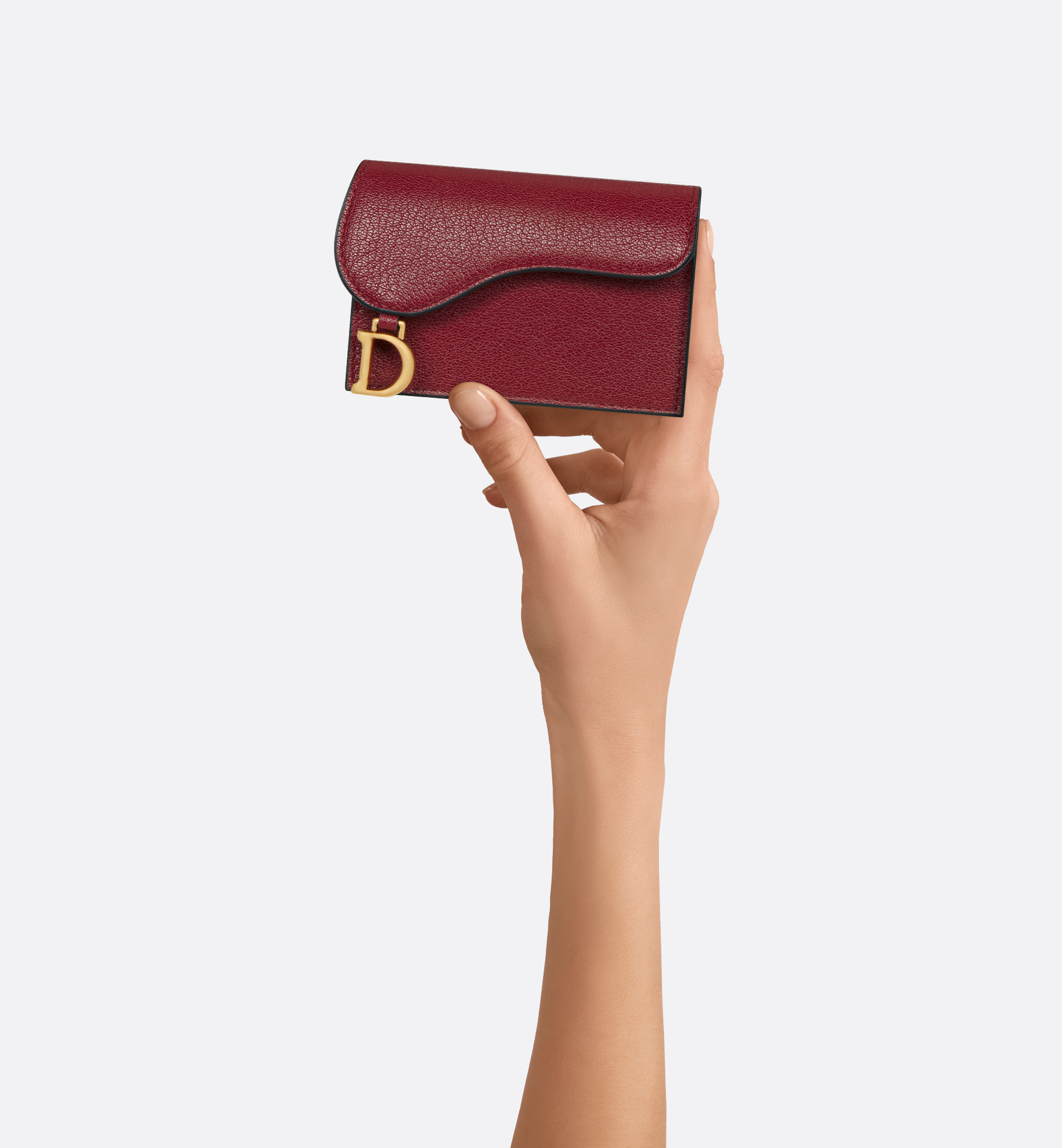 The Saddle Bloom card holder is a compact and practical alternative to the traditional wallet. Crafted in cherry red goatskin, it can hold all the daily essentials. The small and easy-to-use companion may be paired with the entire Saddle line. Main composition: goatskin. Lambskin and technical fabric lining. Front D stirrup. One gusset compartment. Two card slots. Two slip pockets. Made in Italy
