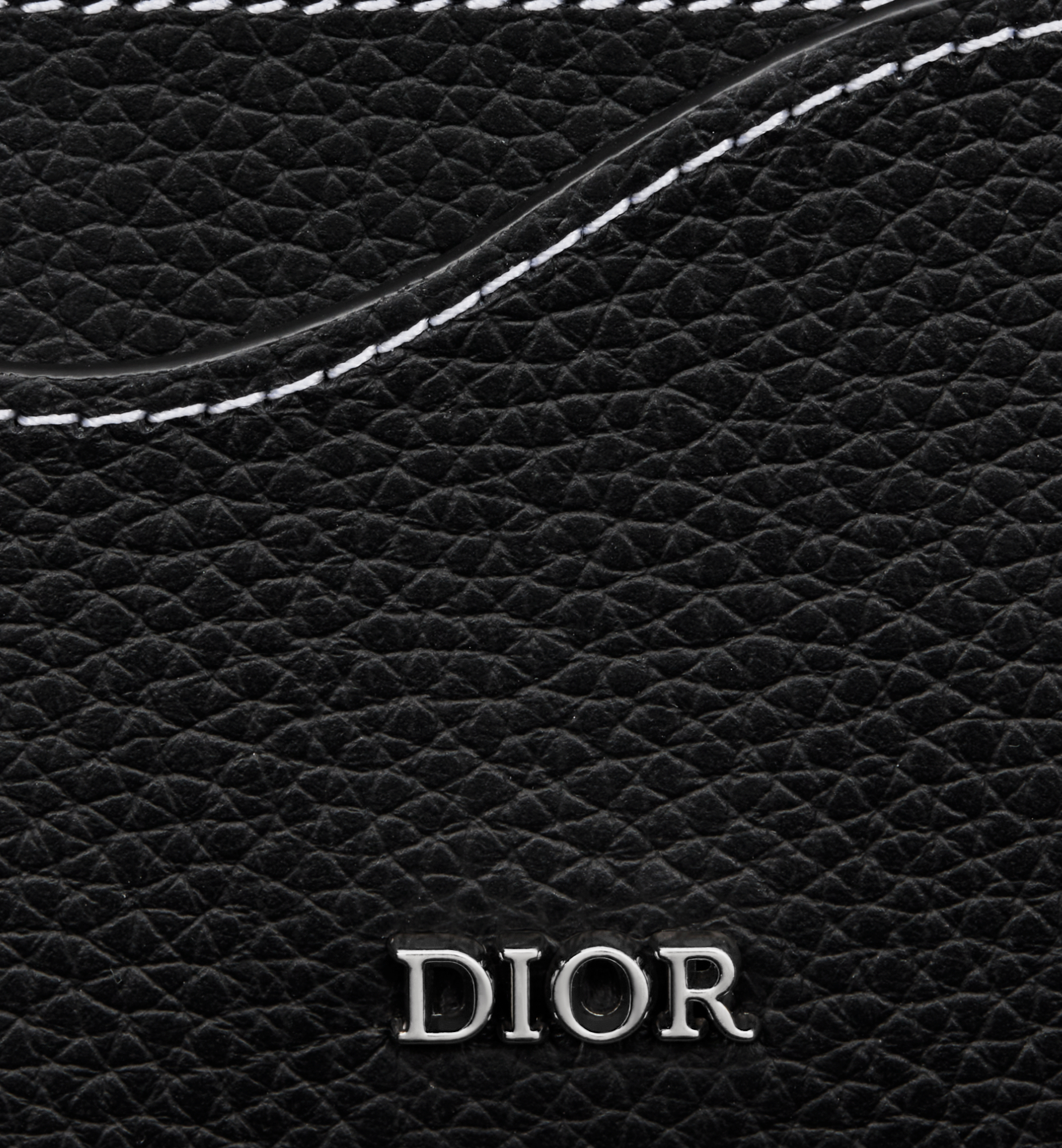 The Saddle card holder is a refined accessory that demonstrates the House’s savoir-faire in leather marquetry. Crafted in black grained calfskin with contrasting topstitching emphasizing the iconic Saddle lines, it features three card slots on either side and a central top slot to store personal effects. Further embellished with a Dior signature on the front, the elegant card holder will slip easily into any pocket. Main composition: calfskin. Technical fabric and calfskin lining. Six card slots. Central card slot. Ruthenium-finish brass Dior signature on the front. Embossed Dior signature on the interior. Dust bag included. Made in Italy or Spain