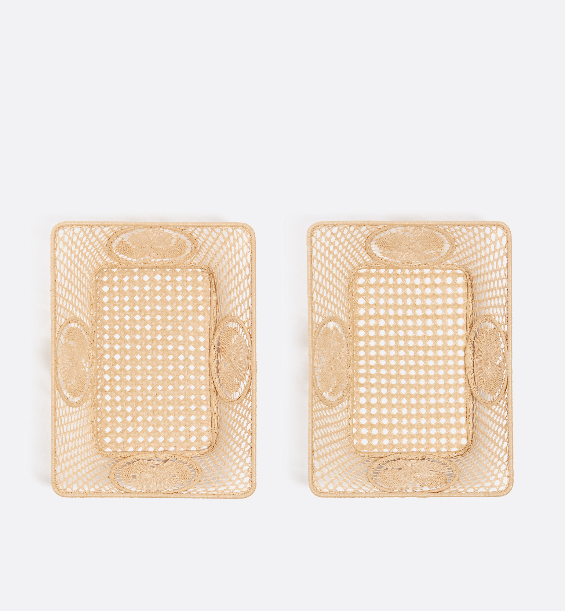 Set of two rectangular raffia-effect fabric baskets. 60% viscose, 40% iron. The set contains two baskets. Made in Italy