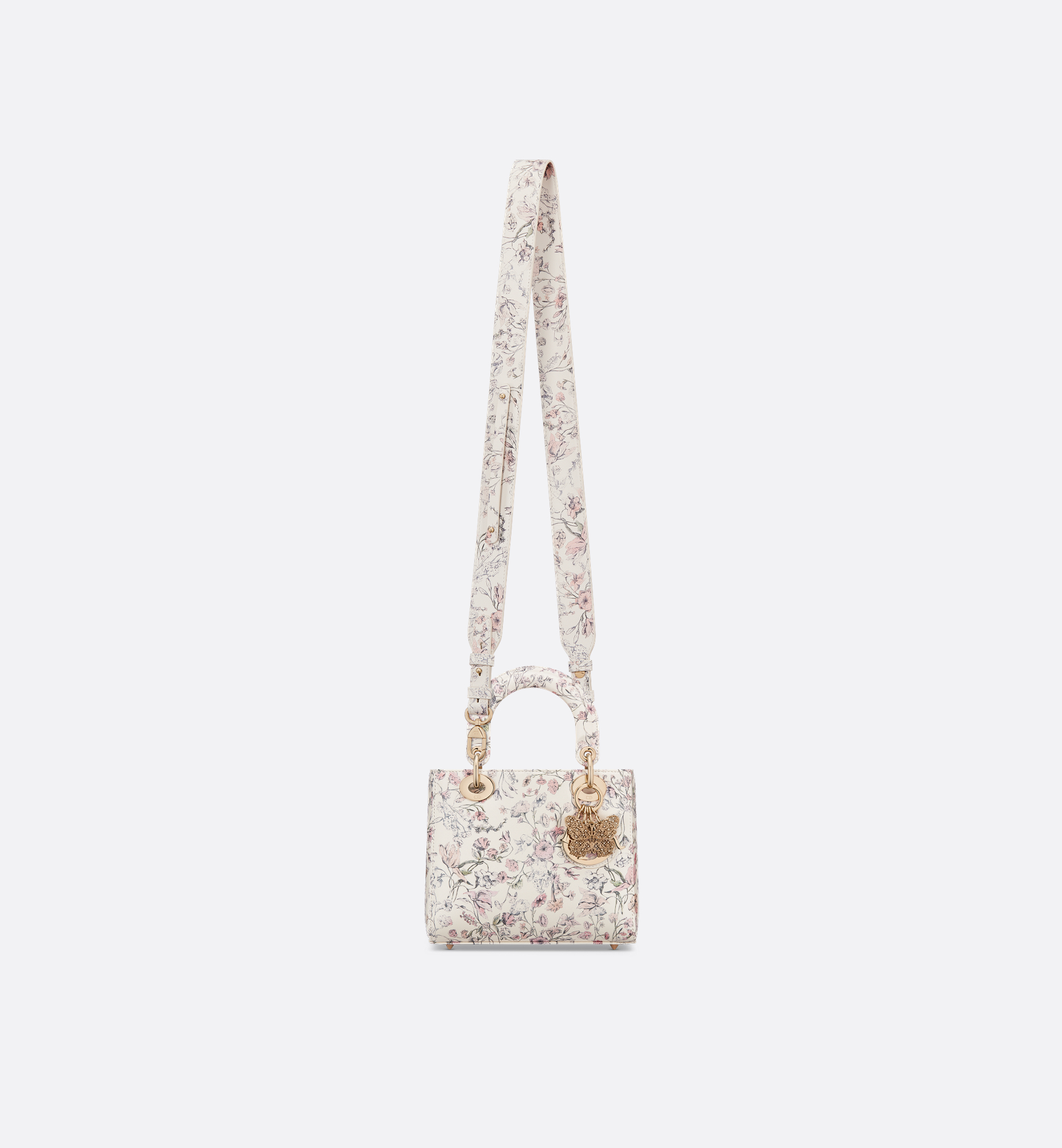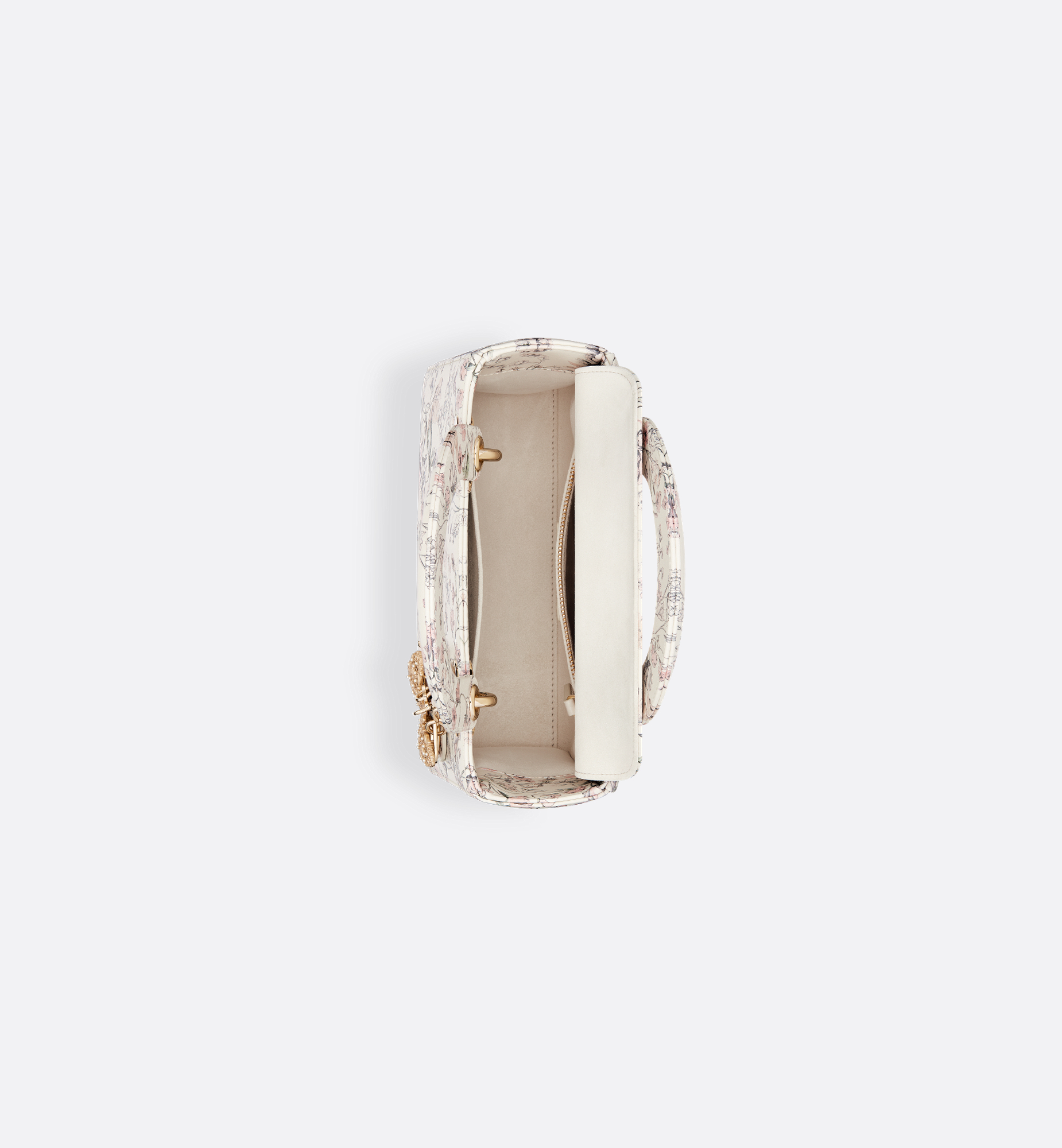 The Lady Dior My ABCDior bag embodies the House’s vision of elegance and beauty. Sleek and refined, the timeless calfskin creation offers a delicate pastel variation of Pietro Ruffo’s pink multicolor Millefiori motif, inspired by Baroque paintings. Pale gold-finish metal D.I.O.R. charms embellish and illuminate its silhouette. Equipped with a strap that can be personalized with badges, the small, unique design may be carried by hand or worn crossbody. Wide, adjustable and customizable strap with three badges included. The strap can accommodate up to six badges in total.. Interior zip pocket and slip pocket. The bag may be paired with the House’s different embroidered straps. Dust bag included. Made in Italy