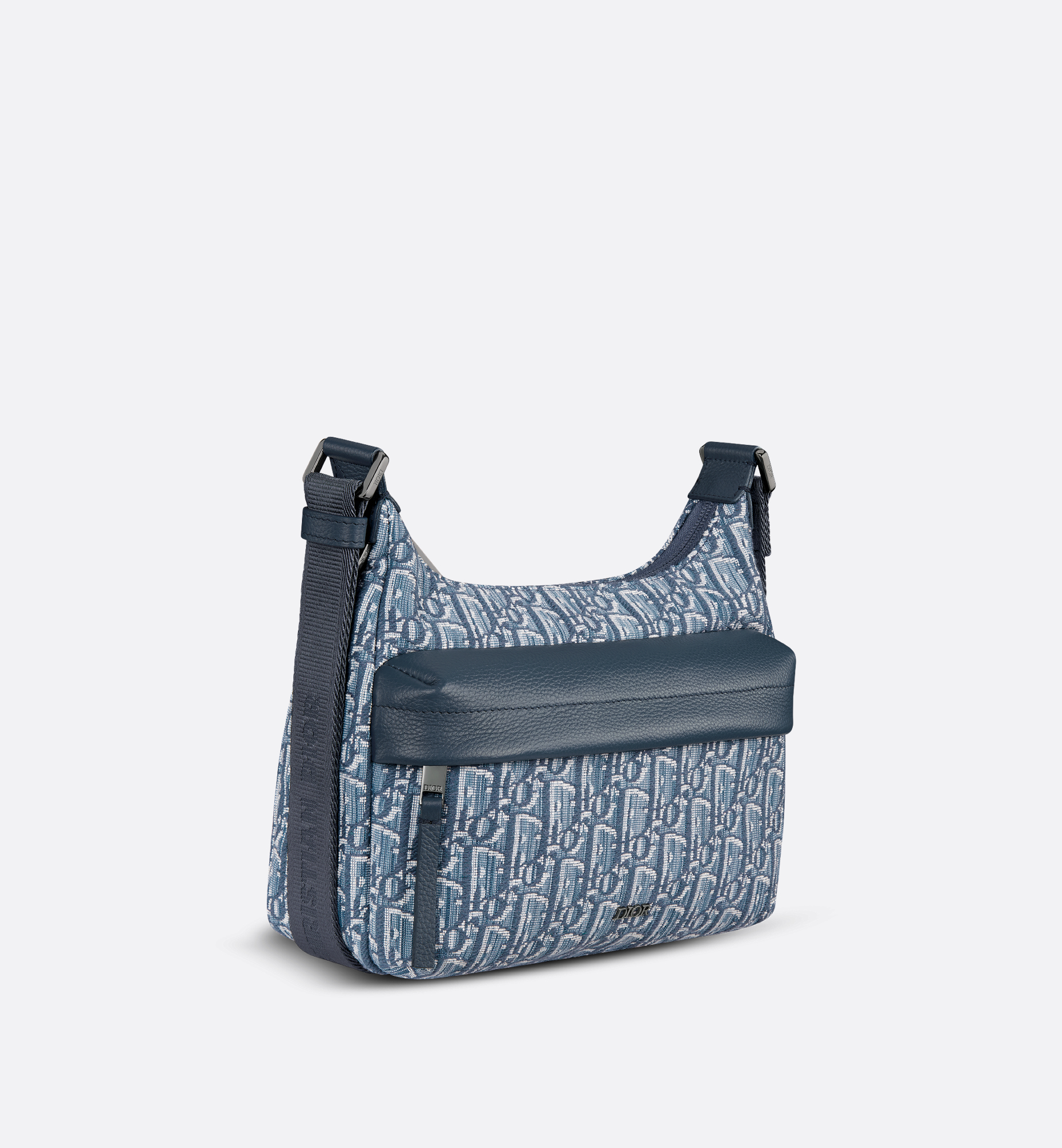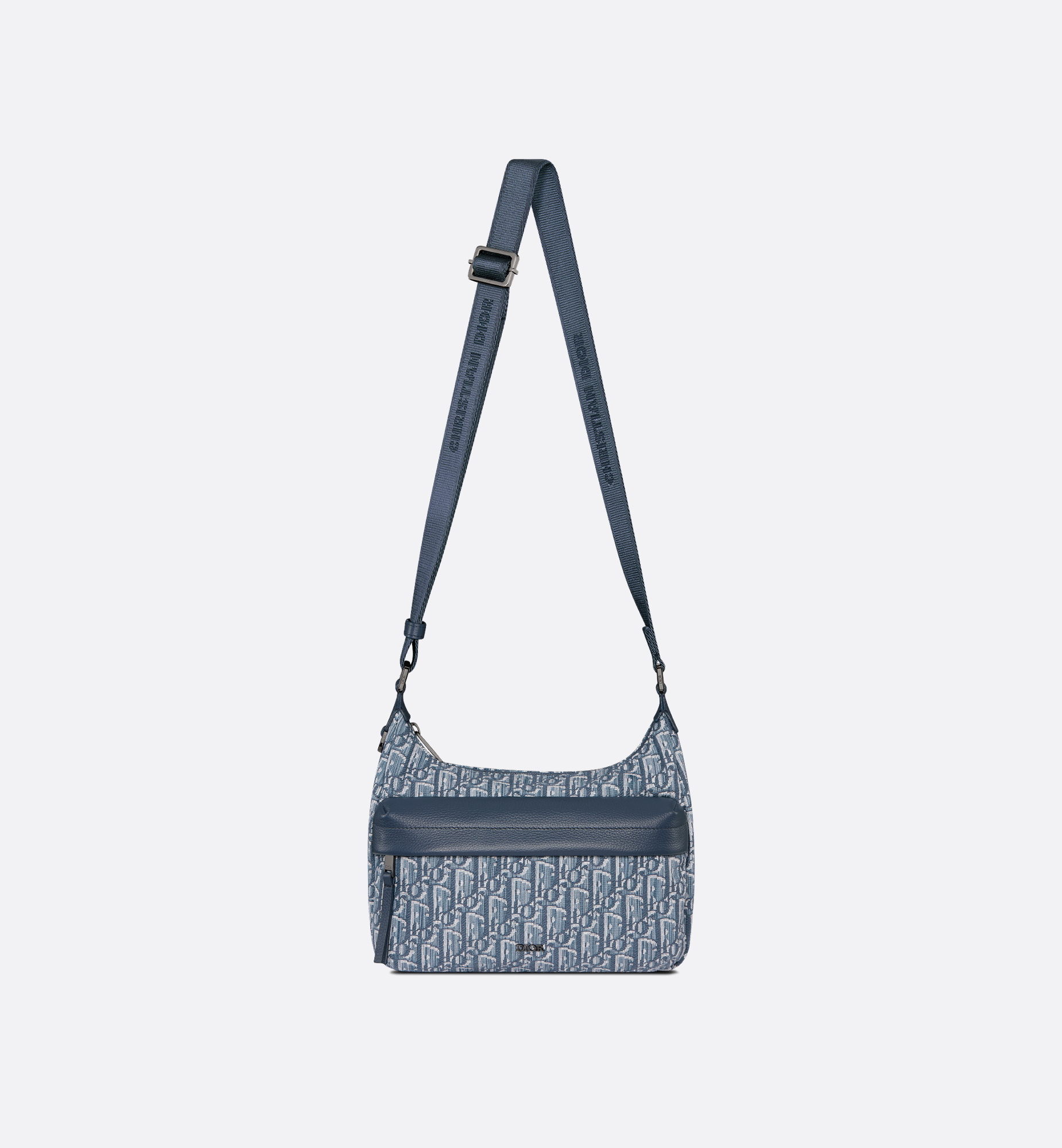 New for Fall 2025, the Rider Soft hobo bag is a practical, modern silhouette. Constructed in blue Dior Oblique jacquard, it is enhanced by tonal grained calfskin detailing. The zip compartment and front zip pocket can hold all the essentials. Featuring an adjustable strap, the functional small bag can be worn over the shoulder or crossbody. Main composition: cotton, technical fabric and calfskin. Technical fabric, cotton and calfskin lining. Main zip compartment. Interior slip pocket. Front zip pocket. Adjustable Christian Dior nylon jacquard shoulder strap. Ruthenium-finish brass Dior signature on the front. Embossed Dior signature on the interior. Dust bag included. Made in Italy
