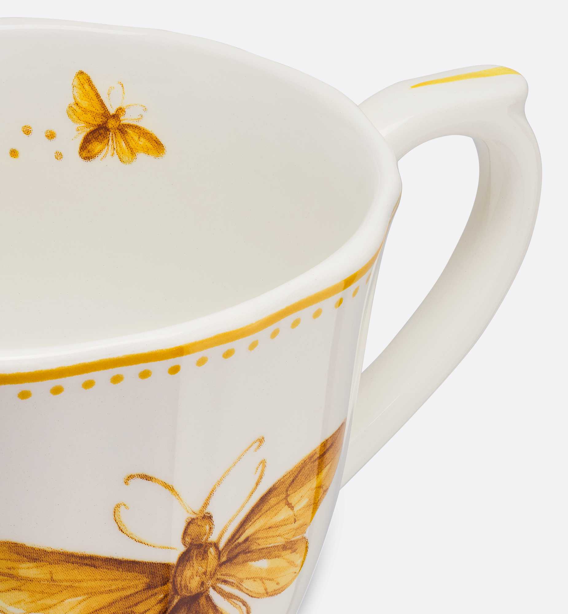 The teacup is unveiled as part of Cordelia de Castellane’s Les Gris-Gris de Monsieur Dior collection and is embellished with the bee, an affectionate tribute to Christian Dior. Crafted in ecru ceramic elevated by delicate colors, it celebrates the art of living and the founding couturier’s passion for superstition. The design will enhance tables with the House’s iconic codes and can be coordinated with other creations from the collection for a poetic and joyous atmosphere. 100% ceramic. Made in France. Dishwasher safe