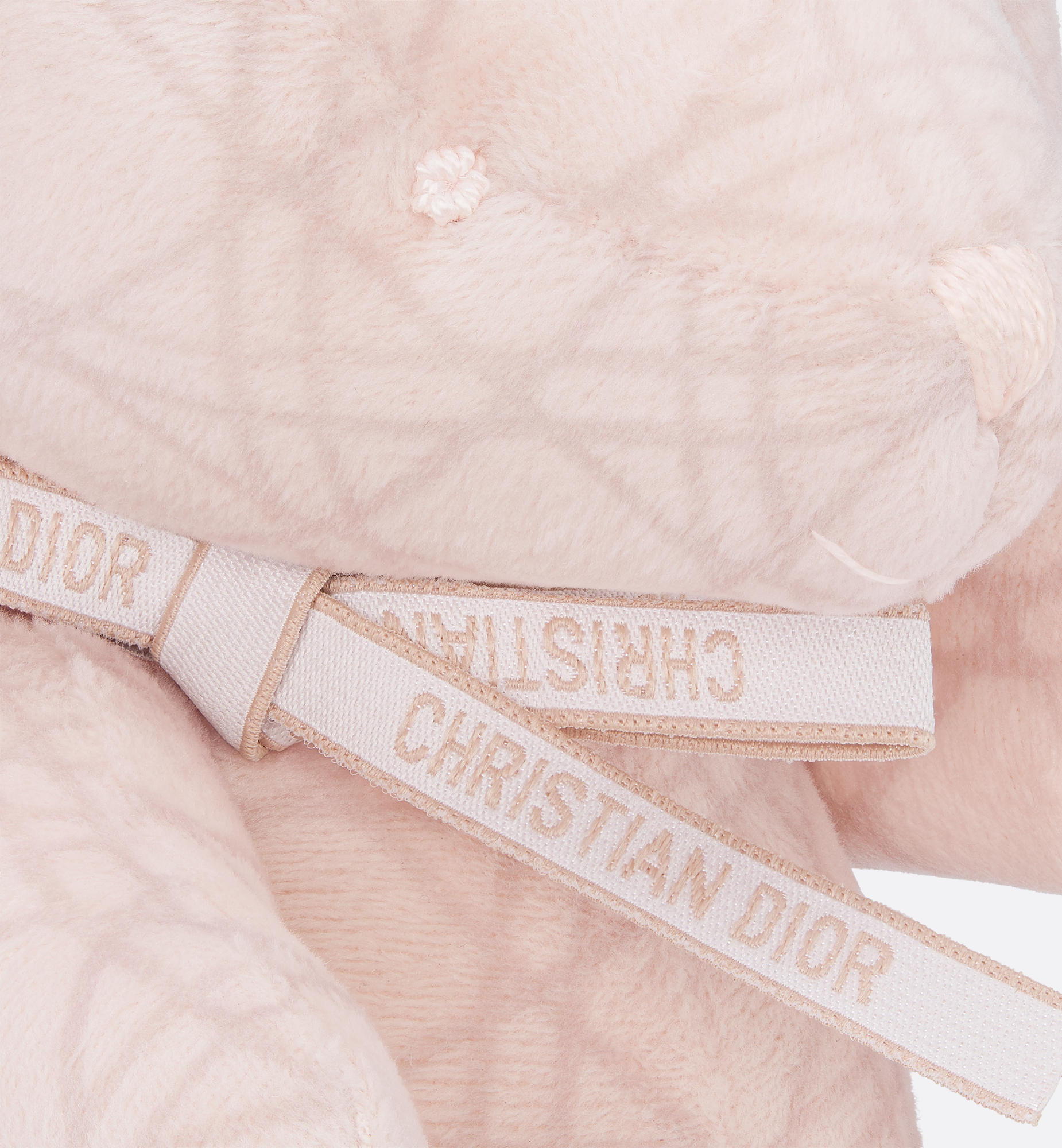 New for Summer 2025, the teddy bear features the House’s hallmark Cannage motif. Crafted in pale pink velvet with a tonal print, it is enhanced by a Christian Dior ribbon tied around the neck. Delicate and silky, the soft toy will make an ideal gift to accompany Baby from their very first days. Ivory and pale pink Christian Dior ribbon tied around the neck. Tonal embroidered eyes and nose. Main composition: 100% polyester. Unlined. Filling composition: 100% polyester. WARNING: Remove all tags, ties, packaging or other items that came with the toy before giving it to a child