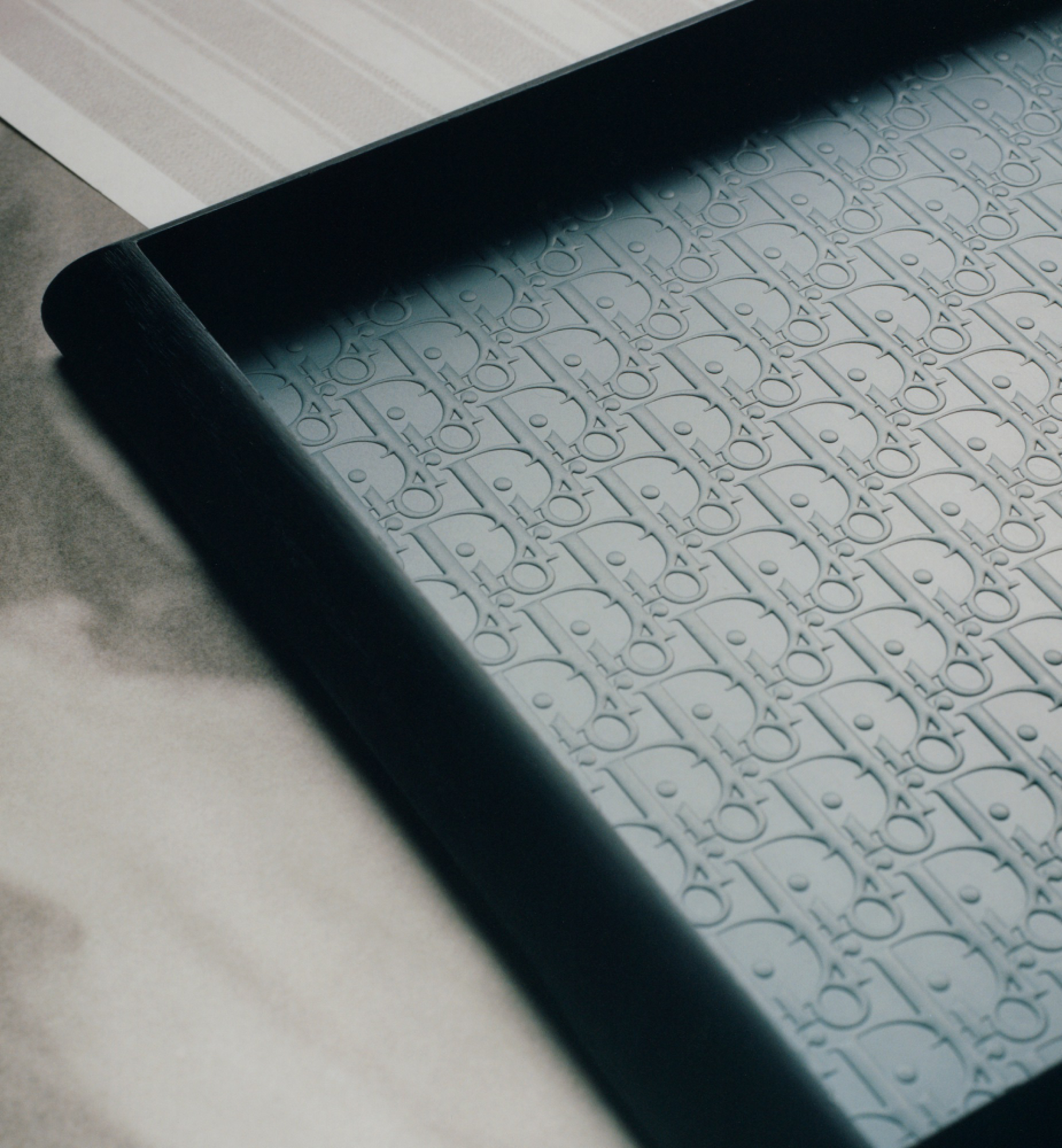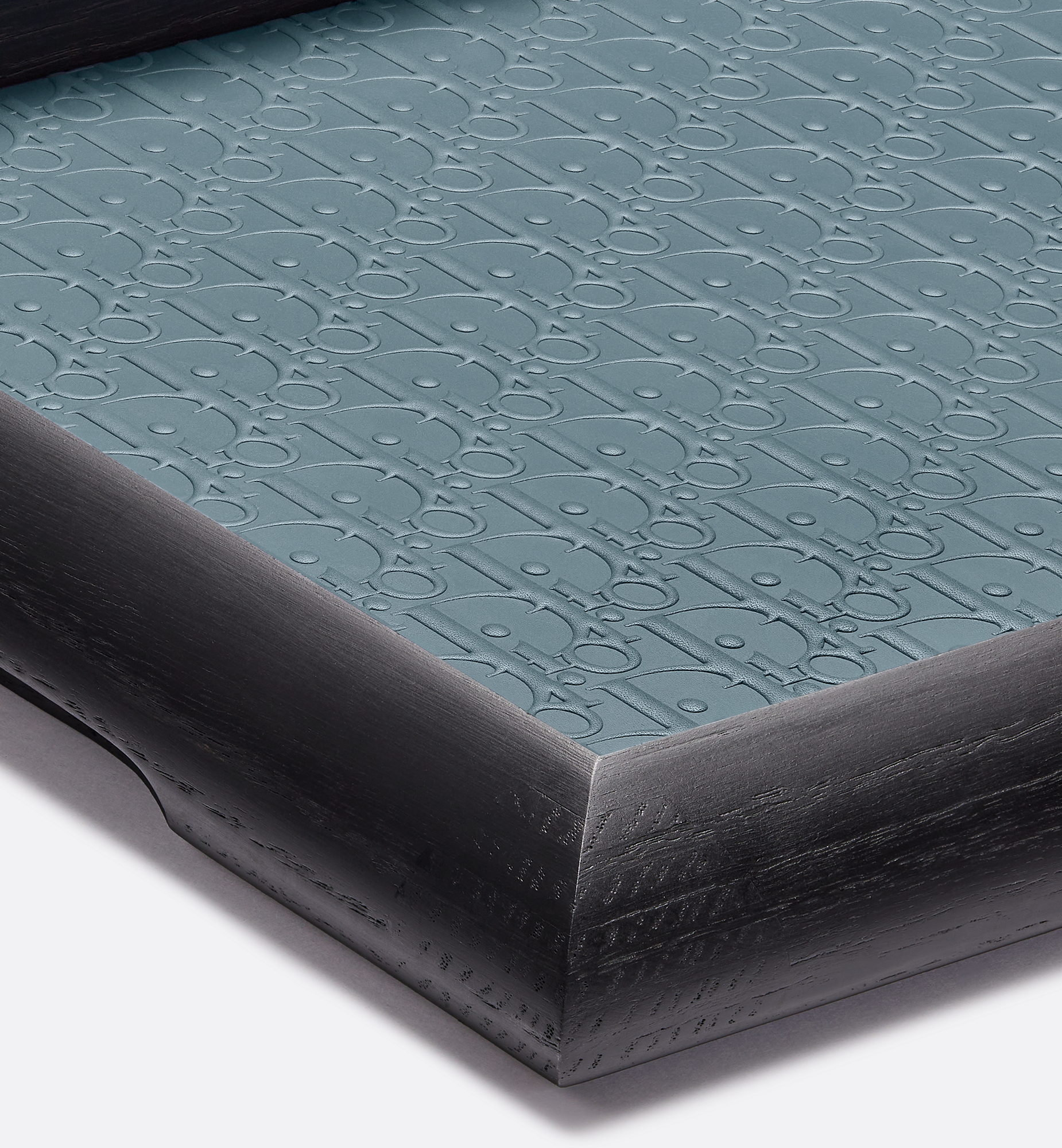 An invitation to the sweetness of life, the Dior Maison x Pierre Yovanovitch collection is enhanced by the understated elegance of creations imagined by the interior designer. A series of essentials — trays, trinket trays, candle holders, a pencil holder and tissue boxes — are unveiled in a darker version delicately paired with embossed leather details in new colors. The ultimate surprise, a box containing two decks of cards by Roman artist Pietro Ruffo and a game of dominoes complete the collection of office accessories, offering an intriguing escape. *Design by Pierre Yovanovitch for Dior 85% oak wood, 10% leather, 5% cherry wood. Made in France