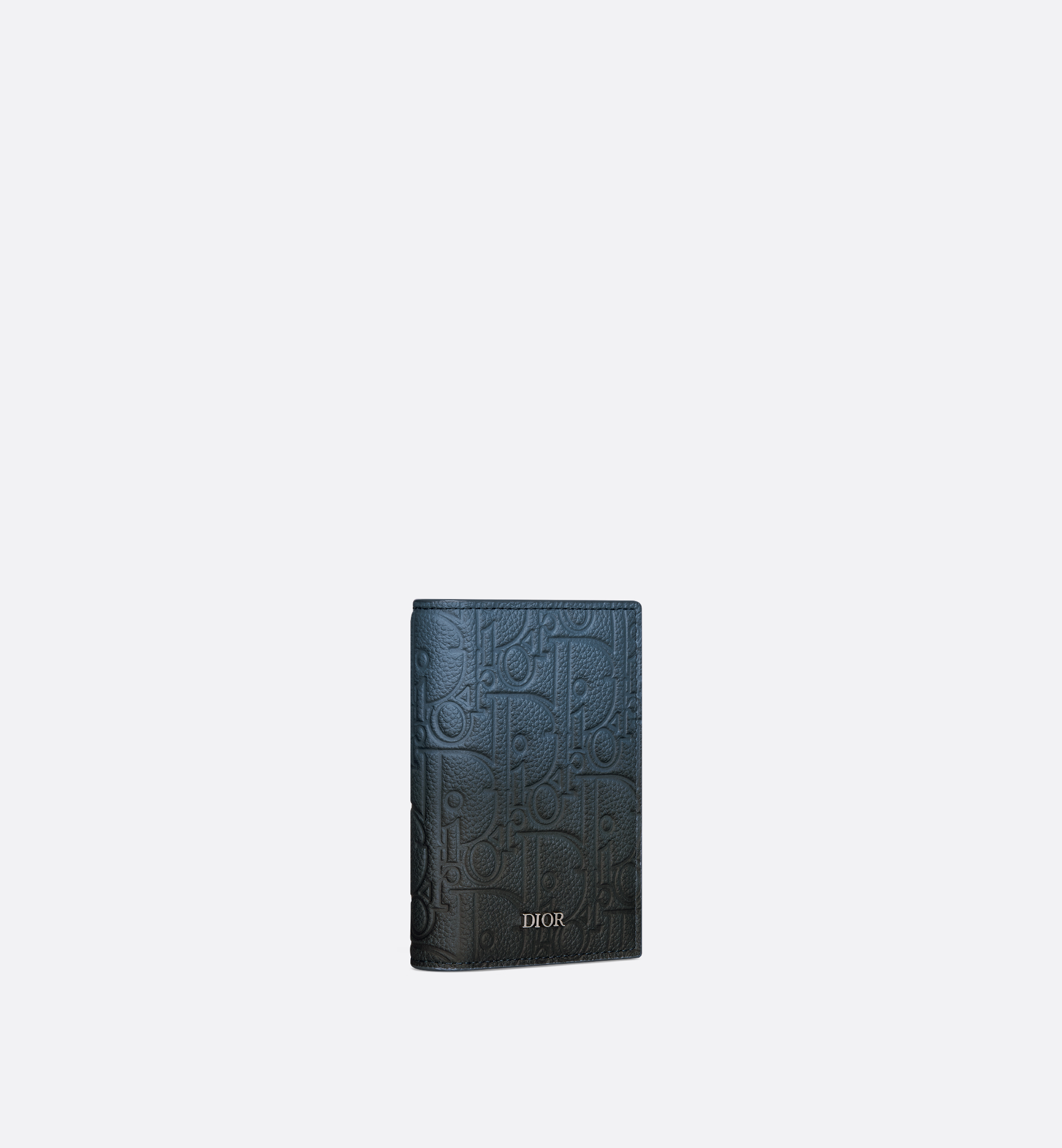 The vertical bifold card holder is a practical piece with refined charm. An expression of the Dior ateliers’ virtuosity, the gradient Dior Gravity leather showcases the iconic motif delicately embossed on calfskin. A subtle interplay of blue and black hues is created using a hand-sprayed technique. Featuring the Dior signature on the front, the style has three card slots on either side and two slip pockets for receipts. The elegant card holder will fit easily into any pocket. Main composition: calfskin. Calfskin and technical fabric lining. Six card slots. Two slip pockets for receipts. Ruthenium-finish brass Dior signature on the front. Embossed Dior signature on the interior. Dust bag included. Made in Italy or Spain