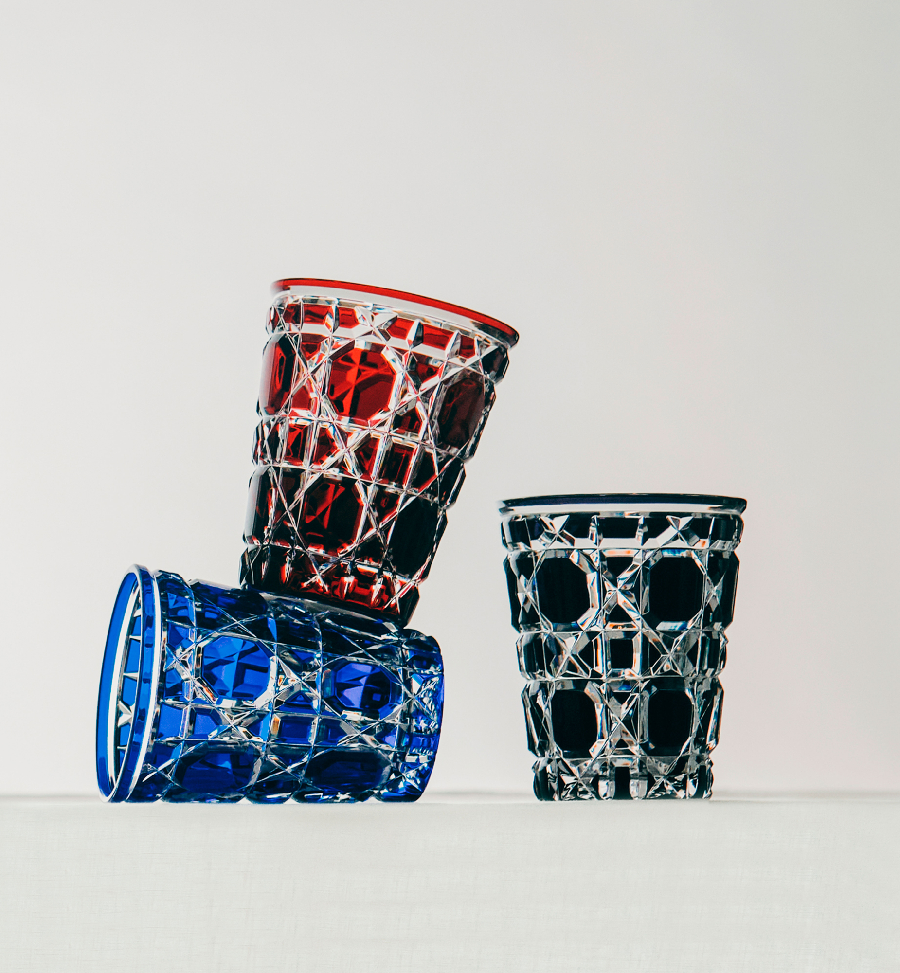 Black crystal water glass with hand-engraved Cannage motif. At each one of his shows, Christian Dior would always seat his guests on elegant Napoleon III-style chairs in the 30 Avenue Montaigne sitting rooms. The chairs were adorned with Cannage, a graphic code that has become a House symbol. 100% crystal. Dishwasher safe. Made in France