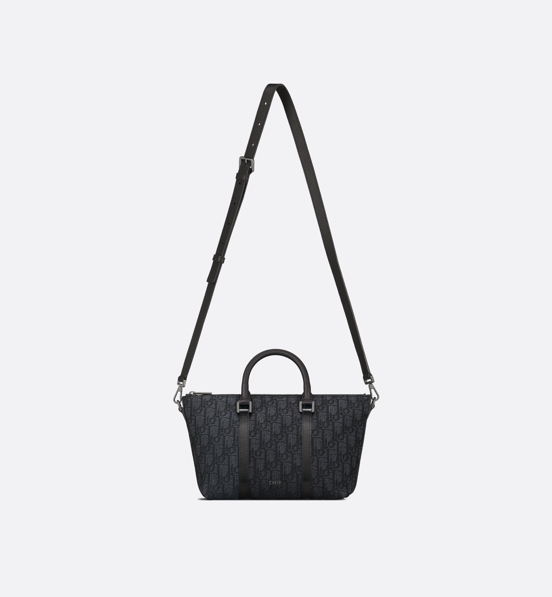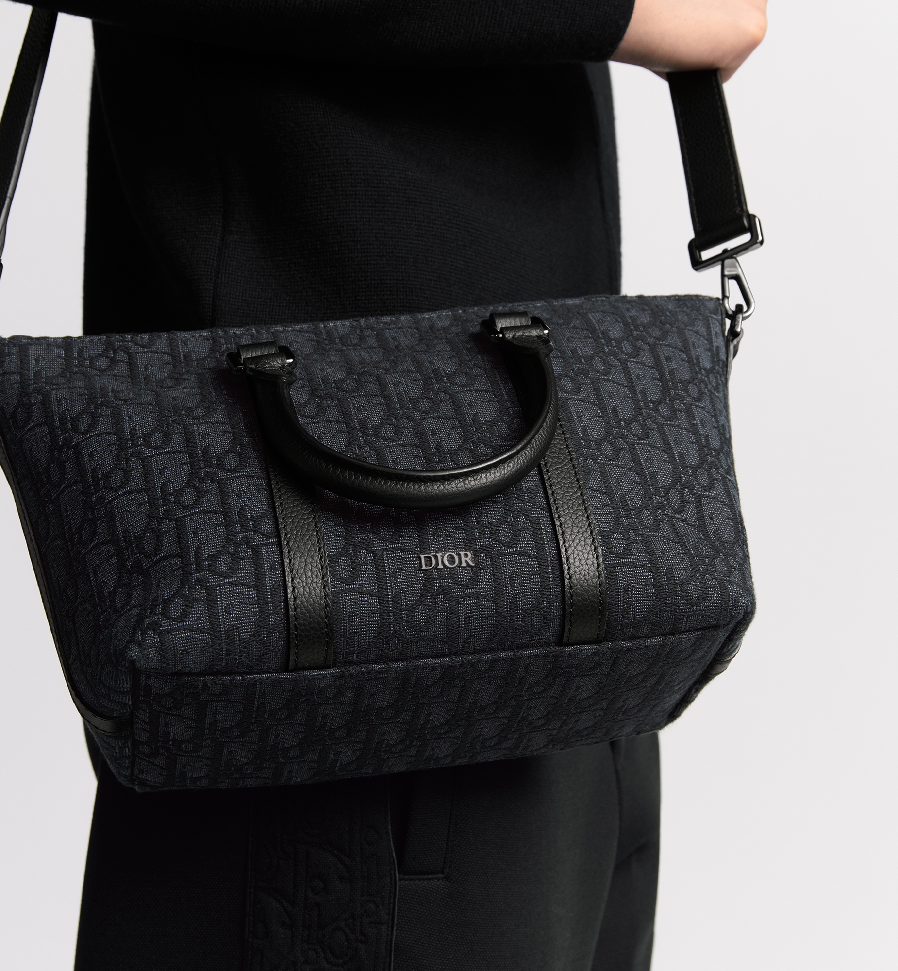 The Weekender 25 is both sophisticated and timeless. Crafted in black Dior Oblique jacquard, the silhouette offers a new take on the iconic House motif, and is enhanced by tonal grained calfskin detailing and the Dior signature on the front. Its generously sized main zip compartment can accommodate all the daily essentials. Featuring an adjustable and removable strap as well as leather top handles, the Weekender 25 can be carried by hand or worn over the shoulder. Main composition: cotton, calfskin and technical fabric. Cotton, technical fabric and calfskin lining. Main zip compartment. Interior zip pocket. Leather top handles. Adjustable and removable leather shoulder strap with lobster clasps. Ruthenium-finish brass Dior signature on the front. Embossed Dior signature on the interior. Dust bag included. Made in Italy